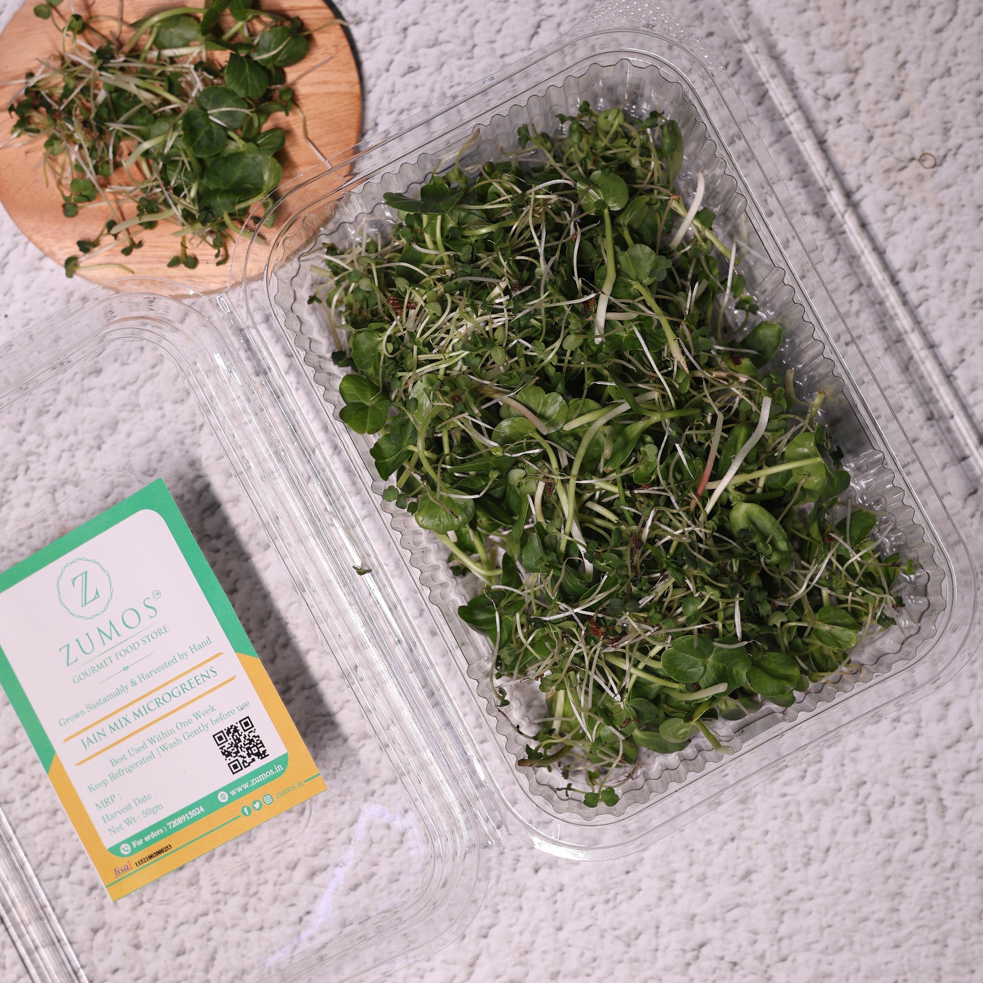 Introducing our Jain Microgreen Mix, a delightful blend of Sunflower, Rocket, and Sorrel microgreens, crafted to cater to health-conscious Jain eaters. Sunflower microgreens offer a rich source of vitamins and minerals, promoting overall vitality, while Rocket microgreens add a peppery flavor and are packed with antioxidants to support your immune system. Sorrel microgreens contribute a tangy zest and are known for their digestive benefits, making this mix both flavorful and nutritious. Perfect for enhancing salads, sandwiches, or wraps, or as a vibrant garnish for soups, this mix is as versatile as it is beneficial.